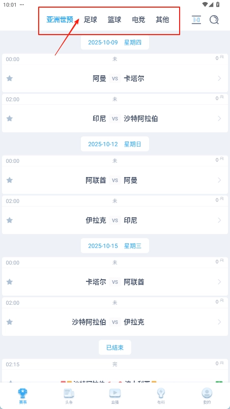 在分类标签中点选亚洲世预,即可查询2026年的多场足球赛程。
