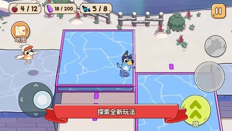 在你滑行、飞翔、滑冰闯过每一关时,去发现隐藏的宝藏,解开有趣的谜题,还能接下那些让人开心的迷你任务。和古灵精怪的角色们互动,帮忙把迷路的小动物送回家。你要四处找找“鹅食”和珠子,这样才能解锁冒险里的新情节,让布鲁伊能在她的任务中一直往前推进。