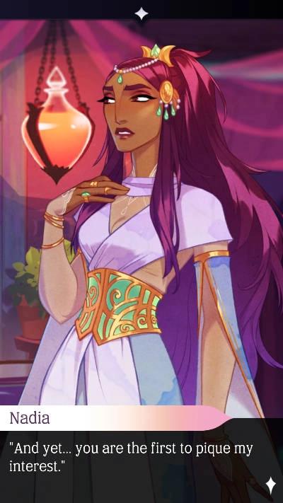 成功为纳迪亚完成塔罗解读后,她会对你生出强烈的兴趣。要是选择回应“命运常常潜藏在细节之中”,能显著提高信任值,并且直接触发她的邀请事件。