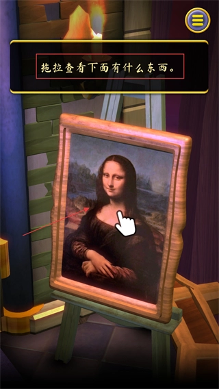按照提示拖拽查看下方有什么物品,拖动这幅画,就能露出画作背后藏着的东西。