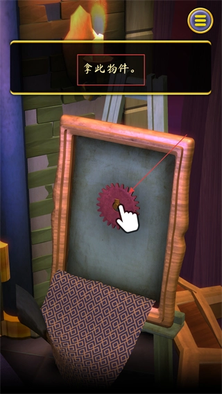 当画作后方露出红色齿轮后,按照提示取走这个物件,点击该齿轮,就能获得这个道具。