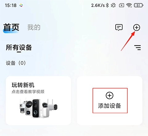 打开,在首页点击添加设备按钮;