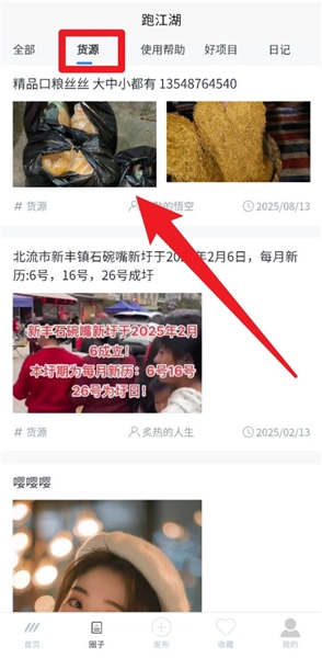 点击“货源”标签,就能看到集市用户发布的农货、地摊资源等信息,这里支持图文展示,也可以发布联系方式。