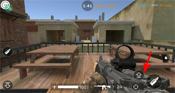 在对战场景中,点击右侧的武器切换按钮,切换适合当前战局的武器装备,为战斗做好准备。