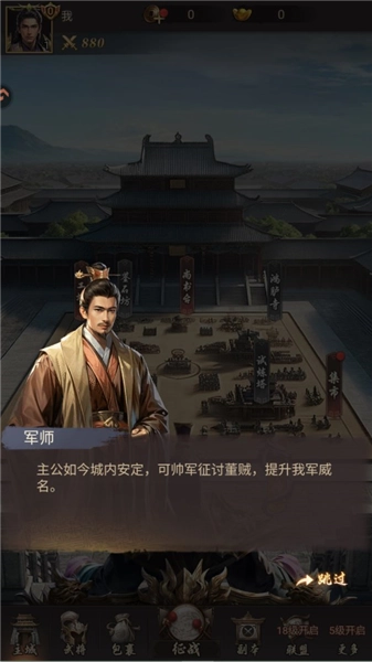 整兵秣马之后,继续点击征战,开始你的三国之旅吧!