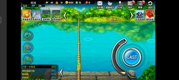 进入游戏如图,玩家需甩杆进水中;