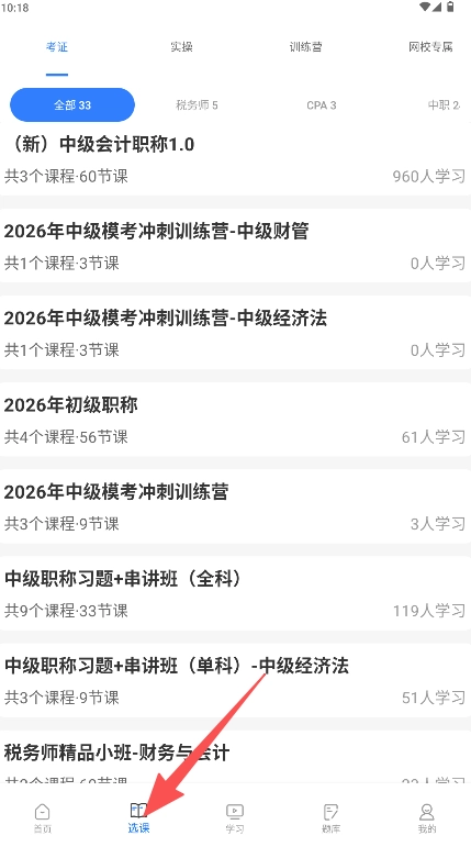 注册成功后,进入详情页的“选课”板块,选择“考证”类目标课程。