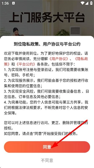 在隐私政策和用户协议的弹窗中点击同意后,即可进入登录页面。