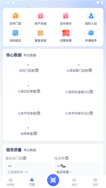 在门店界面中,我们可以看到合作门店、账户充值、合作身份、我的入站等多个板块。