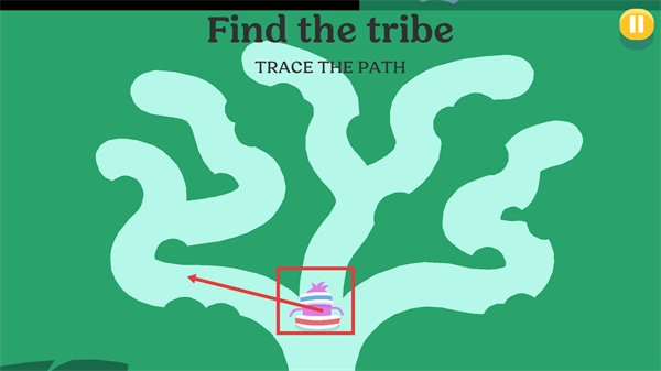 在【Find-the-tribe】关卡里,要操控角色顺着【TRACE-THE-PATH】的路线移动,跟着指引把路径追踪完成。