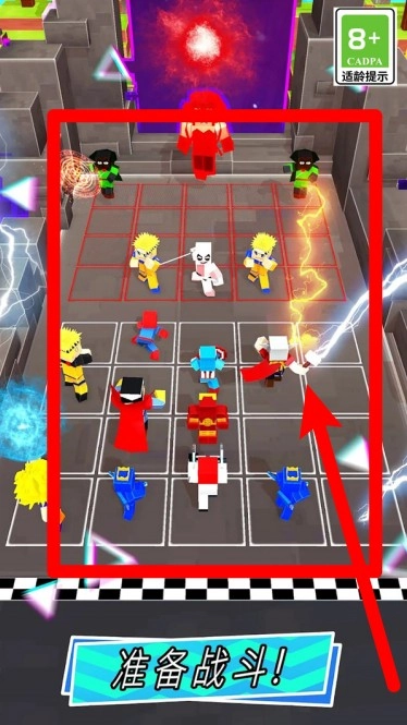 通过传送门进入布阵战斗界面,把收集到的英雄合并升级,合理规划站位,把握技能释放的时机,准备迎接激烈的大战。