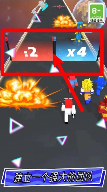玩家需在跑道上持续前行,巧妙避开爆炸与陷阱类障碍,与此同时收集途中的超级英雄角色,积攒力量朝着终点大门冲刺。