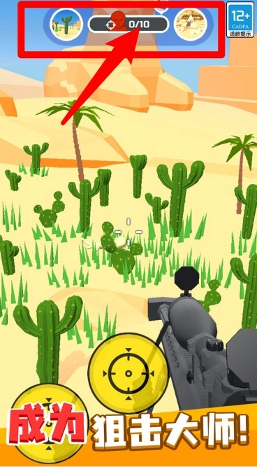 上方击杀目标提示:画面顶部显示当前目标数量“0/10”,即为你本关必须击杀的敌人数量,务必精准计数,避免漏网之鱼。