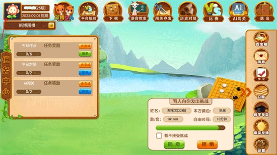 可以向与自己级别相近的棋手发起挑战,也能和不同等级、来自不同城市的棋手对弈。