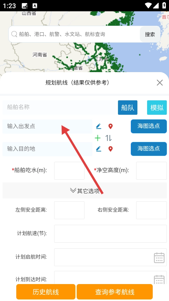 在航线规划界面中,输入出发点等相关信息后,即可开展航线规划的操作。