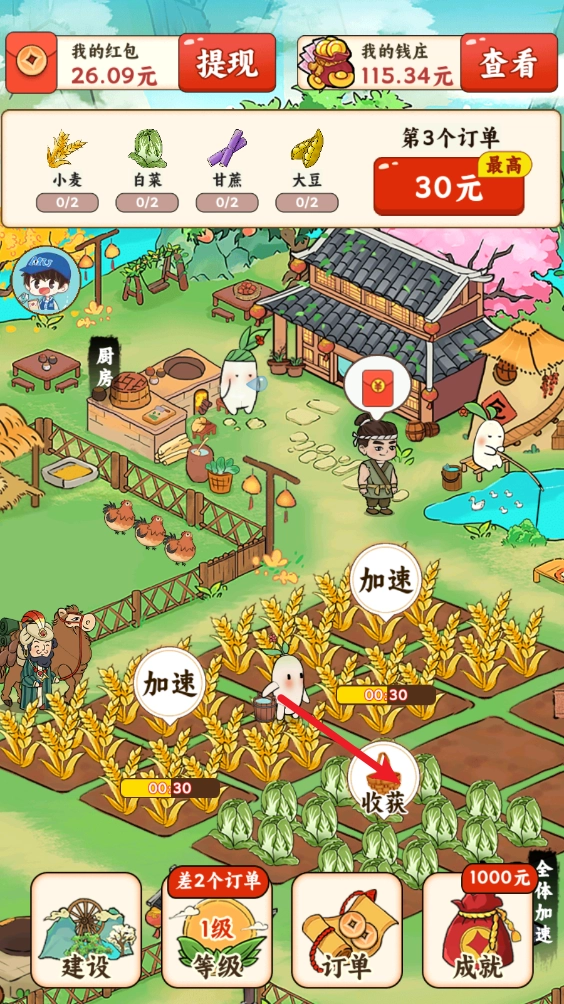 种下的作物过段时间就会成熟,点击就能收获。