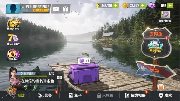 去钓鱼、对决选择不同模式和渔场进行钓鱼游戏。