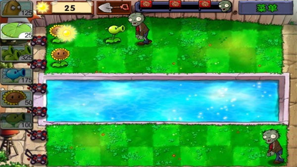还可以种植豌豆射手,它能快速攻击僵尸;此外,在泳池里还能种植缠绕海带和莲叶。