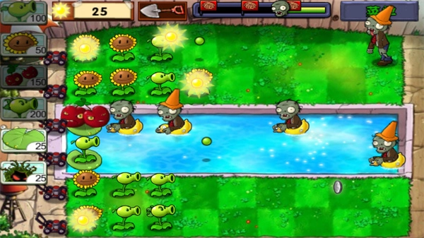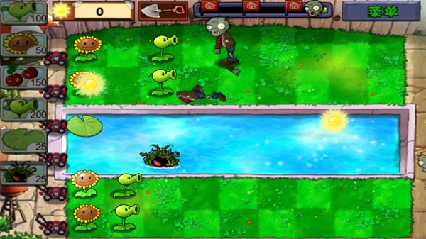 其他植物可以放置在莲叶上,从而持续攻击僵尸;关键时刻还能使用樱桃炸弹,它能一次性消灭大批僵尸。