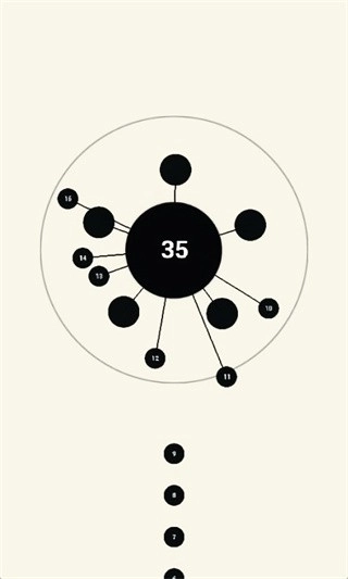 游戏的画面风格简洁明了:以米白色为背景,搭配黑白色的旋转球体,让游戏目的一目了然。