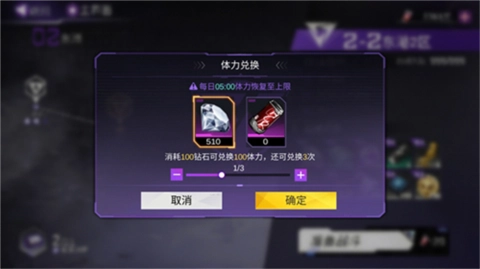 每次挑战会消耗20点体力,体力可以用钻石或者可乐来兑换。当通关主线-第2章-东港7区之后,就能解锁日常补给,同时也能获取体力。