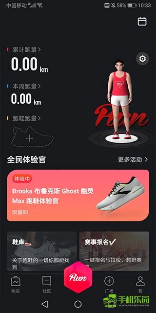 用户打开并登录应用后,进入首页,点击底部的【run】按钮就能开始记录跑步数据了。