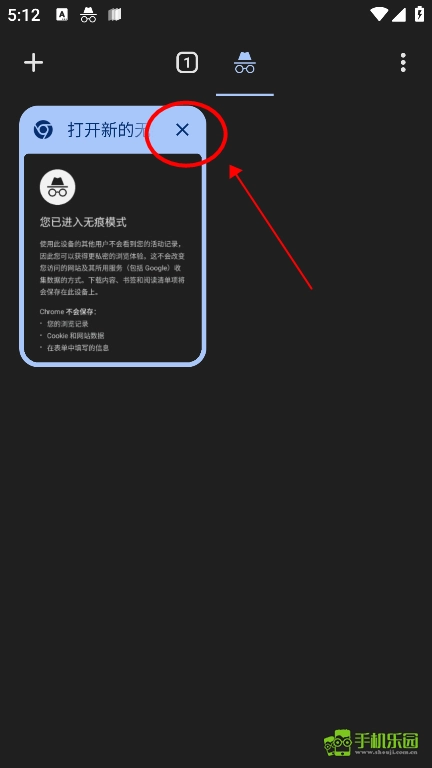 在里面能看到开启无痕模式的窗口,点击关闭按钮,就能退出无痕模式。