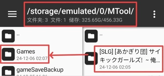 软件需要将准备好的游戏数据包,剪切或者复制到指定的目录/MTool/Games文件夹下。