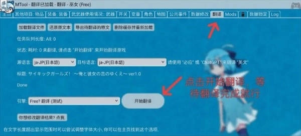 点击翻译按钮即可启动翻译流程,系统会自动生成汉化文件并完成加载,同时还具备操作简单易用的作弊与数据修改功能。