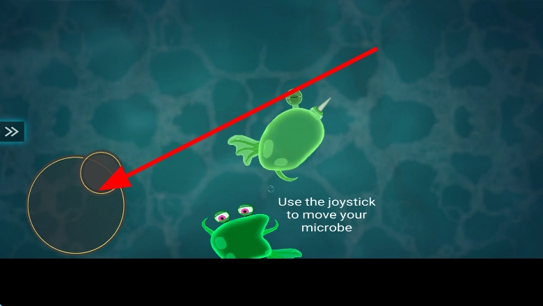 玩家可以借助虚拟摇杆操控微生物的移动,只要灵活地操作摇杆,就能让微生物在微观场景里自由穿梭,前往各个不同的区域,探索微观世界的每一处角落。