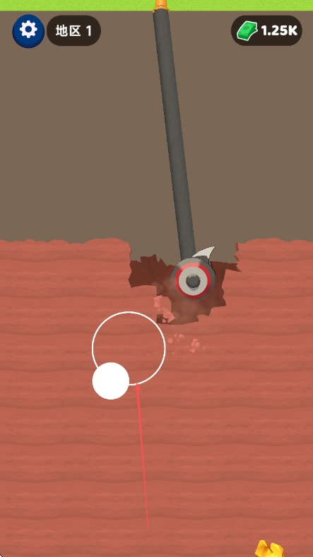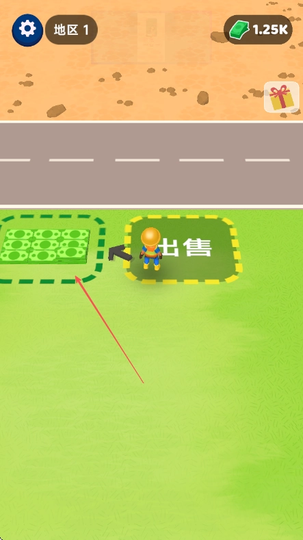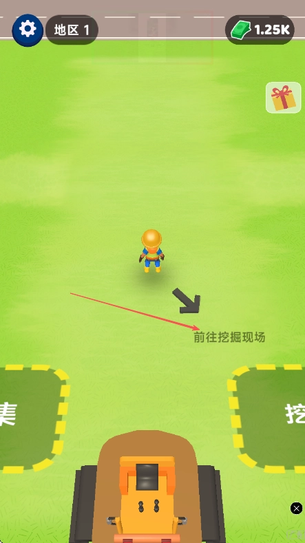 进入游戏后,先查看左上角显示的当前所在地区1以及拥有的1.25K金钱,然后点击箭头指示的位置前往挖掘现场。