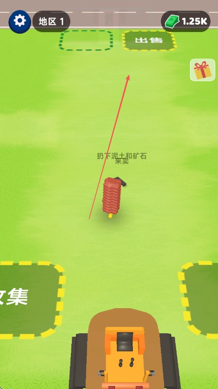 抵达售卖区域后,把泥土和矿石卖掉换取金钱,这些钱可以用来进行后续的升级操作或者解锁新的内容。