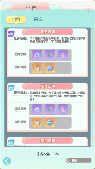 出行的方式分为两种,一种是独自出行,另一种是结伴出行。当室内有小伙伴时,就可以选择结伴出行啦。要是你等不及的话,还能点击缩短出行时间的选项,观看一段广告(其实是超可爱的猫片哦!)就能缩短时间,这样既能吸猫又能节省时间,一举两得呢!
