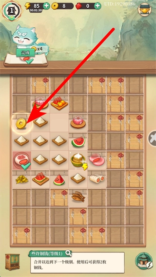 点击棋子能查看详细信息,把相同棋子合并就能升级到下一个规格,使用后可以得到铜钱,铜钱可用于小镇建设等多种用途。