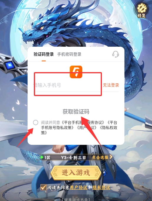 输入手机号码获取验证码就可以进入游戏。