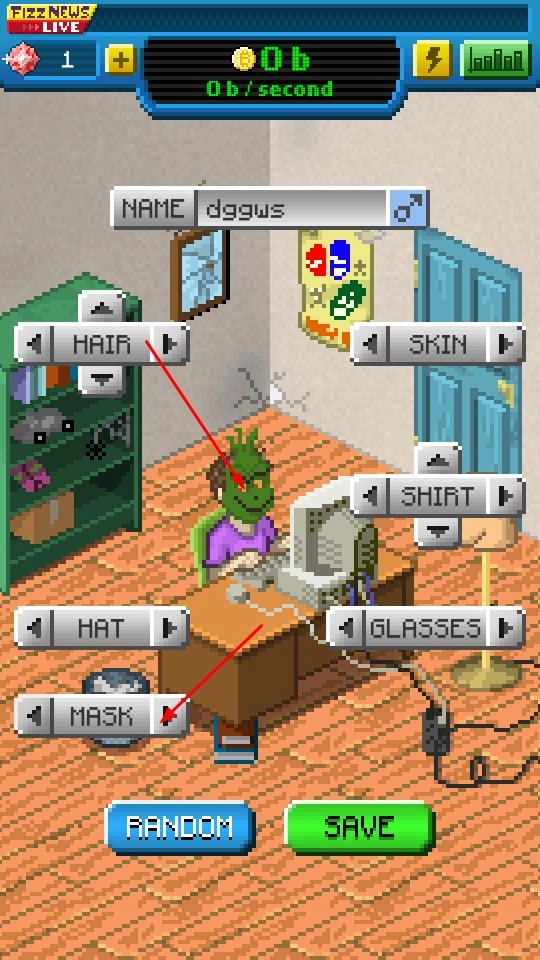 点击RANDOM按钮能够随机生成外观,也可以手动切换HAT、GLASSES等选项来细化相关设定。