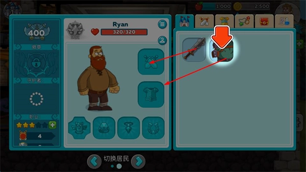 进入角色界面后,能够为角色Ryan配备武器、盔甲之类的装备,以此增强角色的战斗或工作能力。