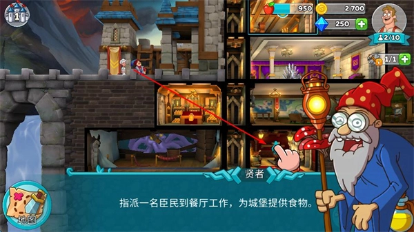 在城堡内部,点击并按住单位就能移动其位置,你需要合理布置这些单位,让城堡里的人员分布和运作都得到优化。