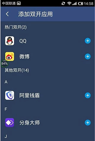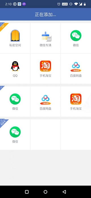 你可以点击主界面上的“+”号,把想要开启小号的应用(例如微信之类的)添加进去。