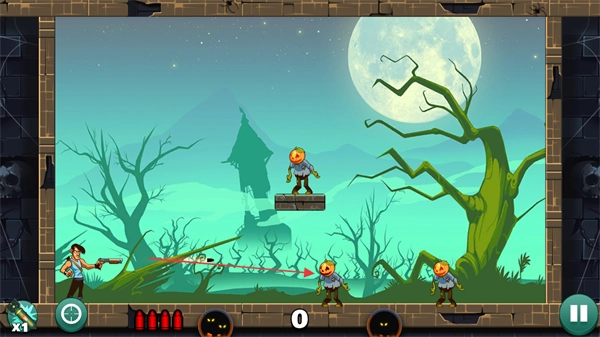 《愚蠢的僵尸》以创新的物理弹射玩法为核心,玩家将化身僵尸猎人开启策略性战斗。游戏中,玩家需手持武器,通过不断调整射击角度与力度,利用环境反弹达成刁钻射击,以此击倒处于不同位置的僵尸。由于每关中僵尸数量通常多于子弹数量,且部分僵尸藏匿在直接射击无法触及的区域,玩家必须仔细观察地形、规划子弹路径,才能在有限资源下完成消灭任务。
