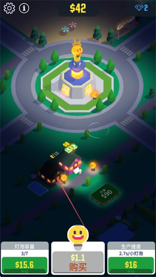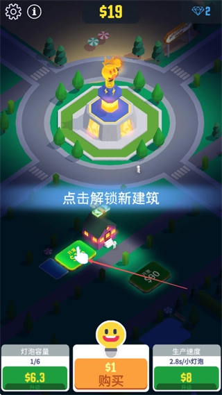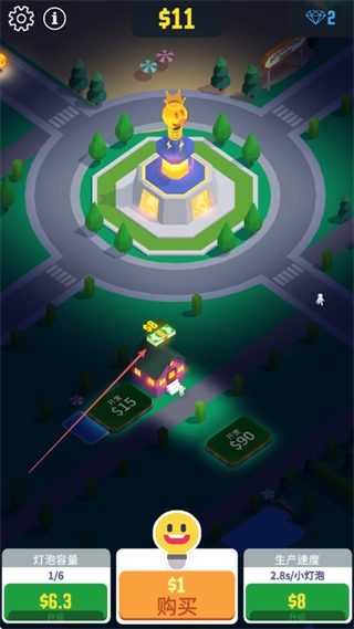 投入资金购置新建筑,例如花费1.1美元,以此提升灯泡的容量与生产速度,推动光之城不断发展。