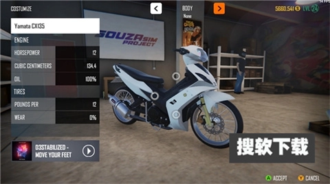 SouzaSim的核心在于对摩托车进行各种改装调校:比如更换排气系统、轮辋和大灯,还能通过调整悬架来降低车身高度之类的操作。