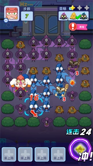 连好线条后点击右下角的“冲”按钮,角色便会自动向前移动,清除掉沿途遇到的小怪。
