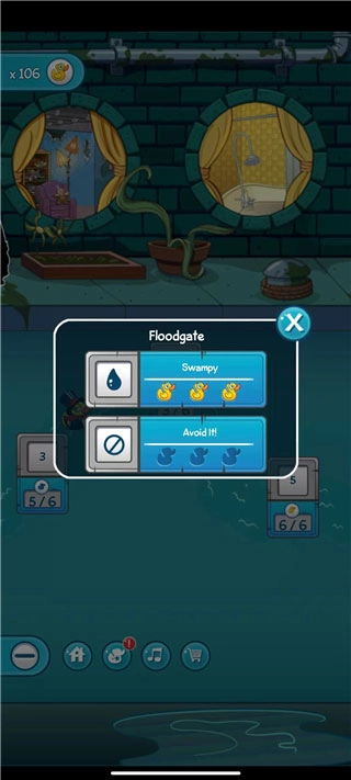 你可以选择自己要挑战的关卡,就像图里展示的那样,关卡分为两种模式:一种是常规玩法,要求把水分给鸭子;另一种则是特殊玩法,规则是不能让鸭子接触到水。