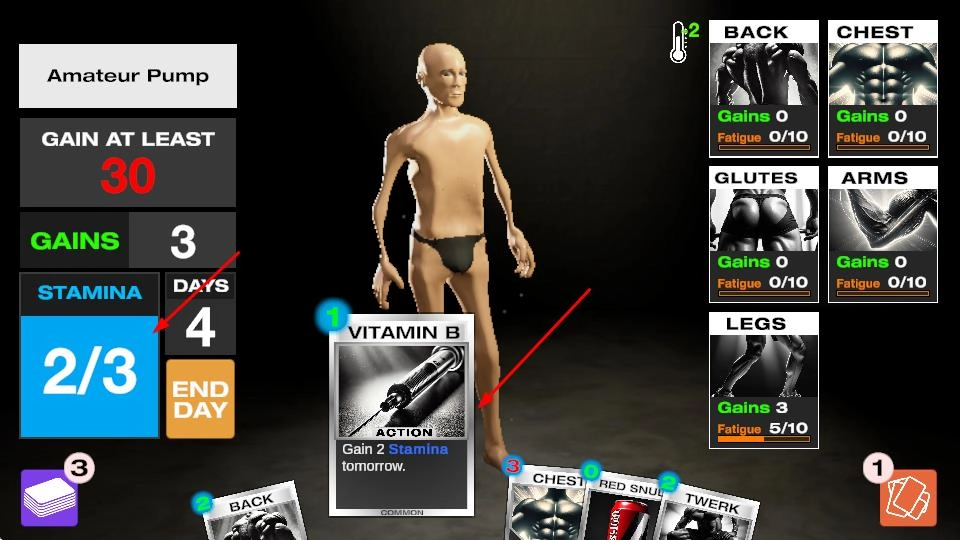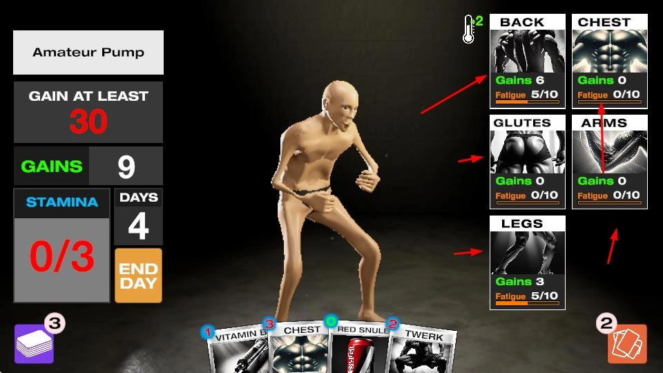 选择卡牌强化部位:进入训练界面后,从下方卡牌库中挑选对应背部、腿部等部位的强化卡牌,点击使用即可触发训练效果,根据当前体型短板优先选择卡牌,逐步完善肌肉线条。