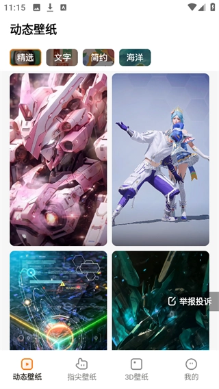 点击下方的“动态壁纸”选项,这里面涵盖了文字、海洋等多种类型的壁纸。