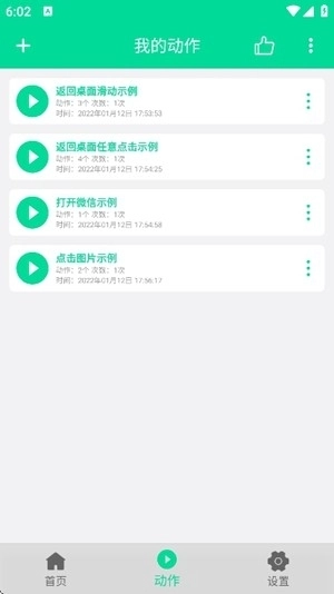 了解后进入【动作】专区,点击左上角+号。