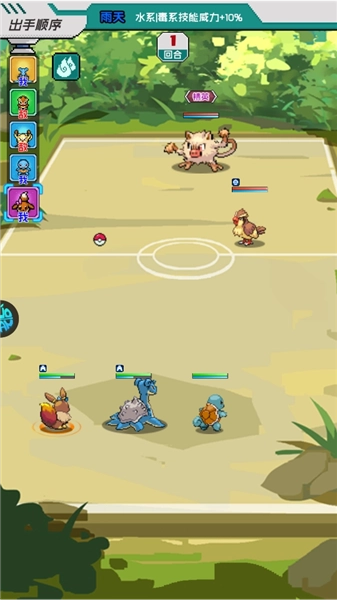 回合制战斗中加入了属性克制与技能连锁的设定,玩家需要依据敌人的阵容来调整精灵的站位以及技能的释放顺序。