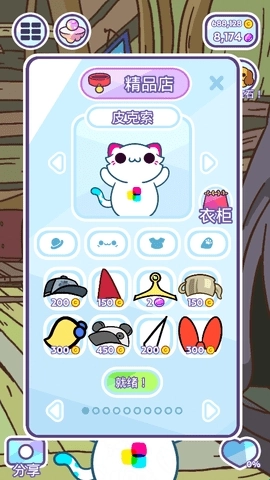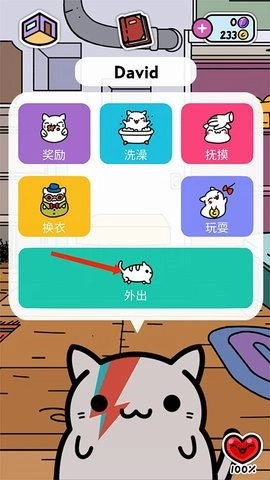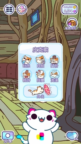回到游戏主页后,我们点击猫咪就能和它互动,挑选你想一起互动玩耍的项目吧。