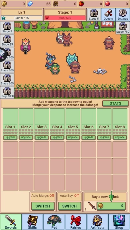 武器合成功能:能够把传说级别的剑进行合并,从而提升战斗能力。